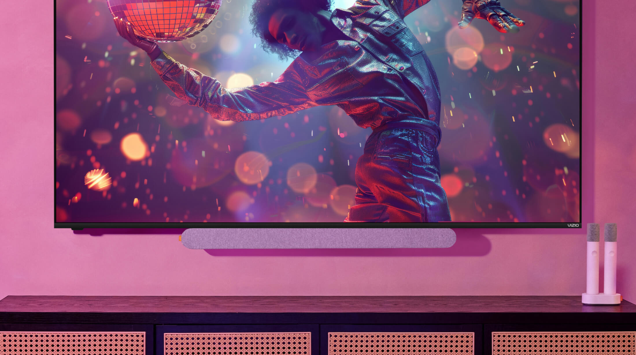 Transitions from a soundbar to a custom karaoke experience the moment you pick up a mic.