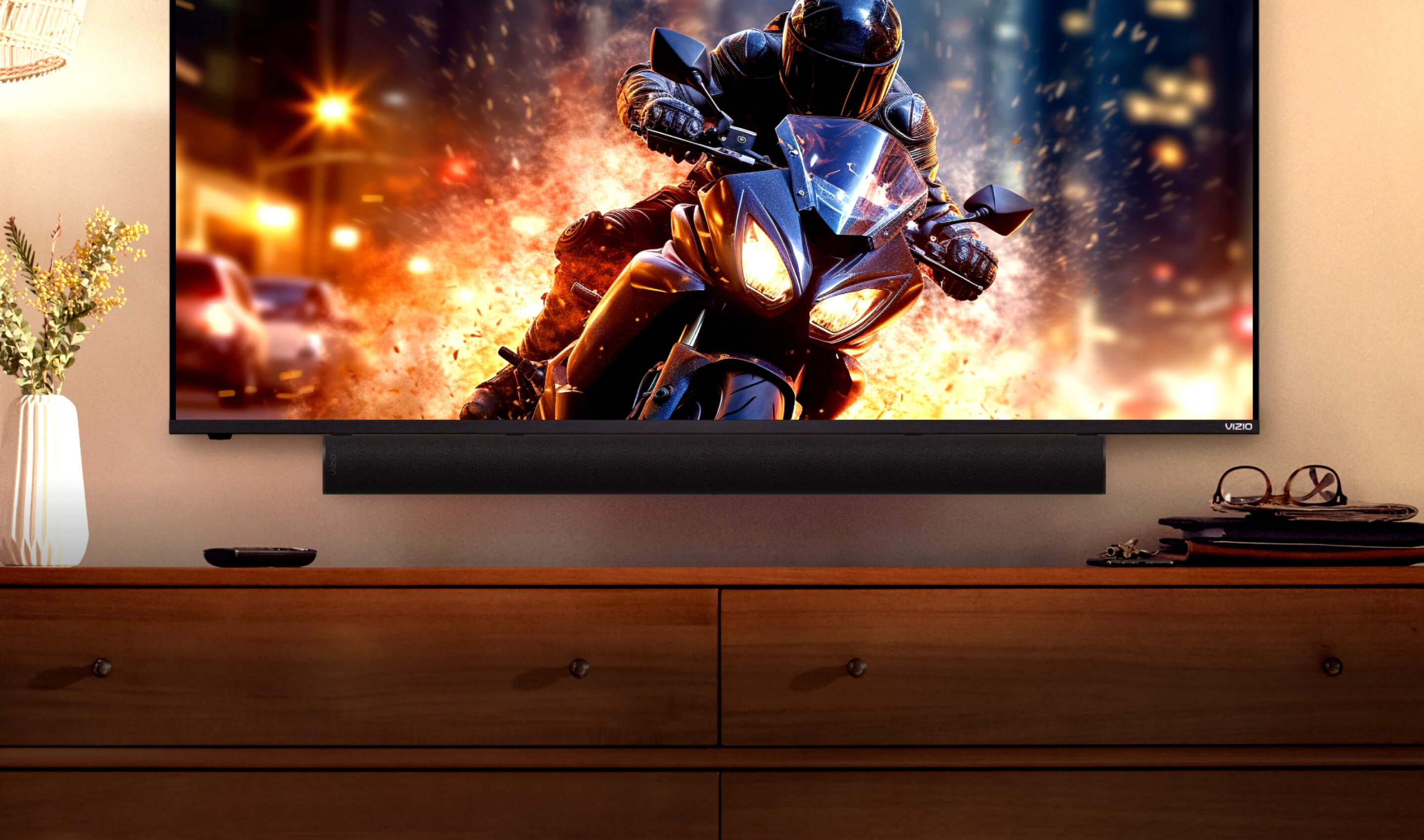 When paired with a VIZIO TV, easily adjust soundbar settings through the integrated soundbar menu.